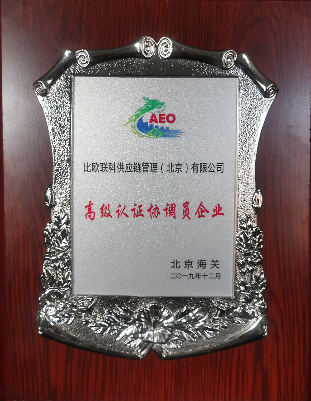 此次,比欧联科不仅通过了海关AEO高级企业认证,还荣获了北京地区高级认证协调员企业的荣誉。这是北京海关对公司内部管理、守法合规的认可,也说明了公司规范化管理工作取得显著成效,在诚信经营、快速发展的道路上又迈进了一步。比欧联科获此荣誉,标志着比欧联科将享有优先通关放行、较低的查验率及AEO互认国家或者地区海关提供的通关便利措施,有助于公司国际国内商务合作,维护国际优质商业形象,提升综合竞争力,降低供应链及通关成本。