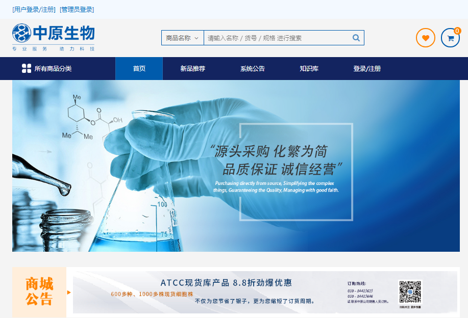 中原公司一直以“推动生命科学事业,服务于全人类健康”为使命!面对日新月异的全球生物产业热点需求,中原公司不断提高服务水平,充分发挥自身优势,服务理念从“传统模式”向“互联网+模式”升级。中原公司网上商城于2019年5月1日正式上线。2019-05-07 09:20:00.0