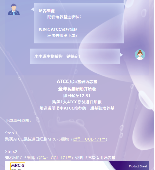 ATCC九种基础培养基 全年促销活动开始啦 即日起至12.31 购买1支ATCC原装进口细胞 赠送说明书中ATCC推荐的一瓶基础培养基2023-03-31 15:51:00.0