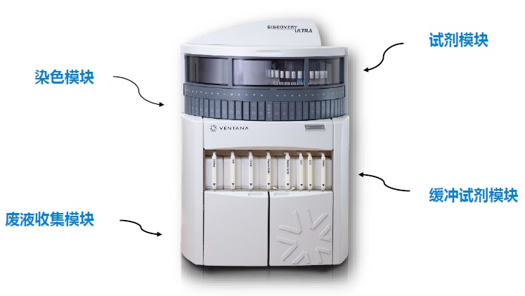 在病理研究中常用的染色技术可分为初级染色和高级染色。初级染色比如H&E、特染,大部分样本可采用此类方法进行研究;但是还有些样本需要借助高级染色,比如:免疫组化检测(IHC)和原位杂交检测(ISH)才能获得理想结果。接下来着重介绍一下专门用于科研研究的高级染色平台—DISCOVERY ULTRA。