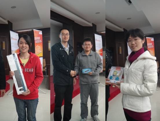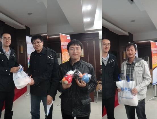 中原公司研究生交流论坛的一个重要环节,就是最激动人心的抽奖环节,除了每一位到场的老师和同学都能获得疯狂的小鸟一只外,我们还现场抽取了3套疯狂小鸟公仔,迷你键鼠,无线音乐耳机和无线键鼠套装等共六个大奖,恭喜如下获得大奖的六位幸运儿: